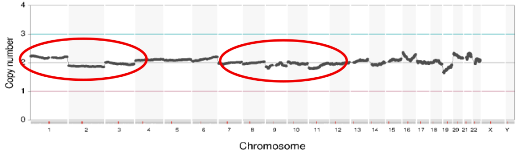 以下の図のように、PGT-Aの解析結果を見てみると、チャートの乱れ(ノイズ)がしばしば見られます(図1)。