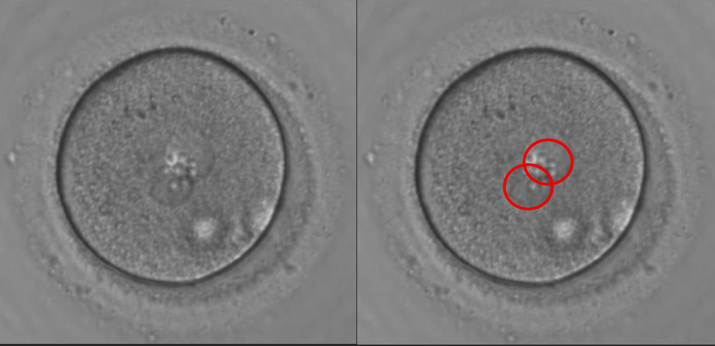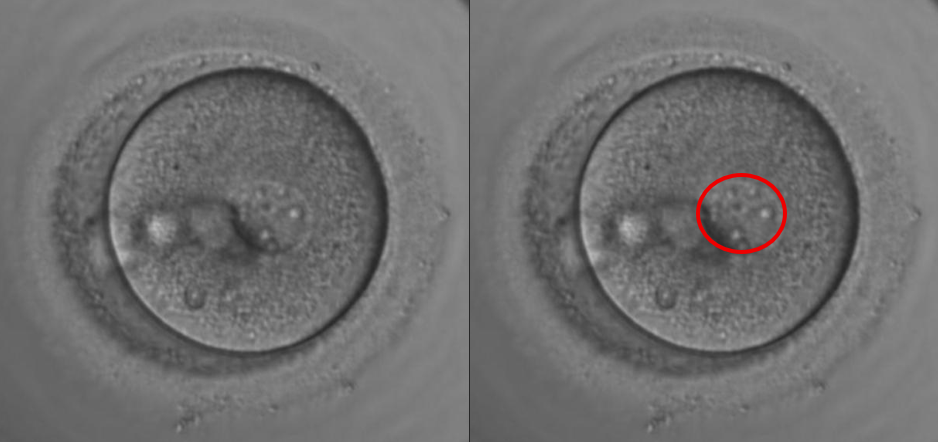 受精が起こると卵子は減数分裂を再開し、半数の染色体を含んだ第二極体と呼ばれるものを放出します。しかし、この第二極体がうまく放出できないと、卵子由来前核が2つ形成されてしまうことになります。